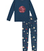 Cooler Schlafanzug für Jungen von Claesen's. Zweiteiliges Pyjama-Set für Jungen, bestehend aus einem T-Shirt mit Rundhalsausschnitt und langen Ärmeln in navy mit einem Aufdruck des roten Mondes auf der Vorderseite. Das T-Shirt hat eine marineblaue Paspel entlang des Halsausschnitts. Die passende Pyjamahose (Modell Long John) ist in navy mit einem Allover-Aufdruck von Planeten. Die Pyjamahose hat einen marineblauen Gummibund mit weißem Claesen's-Logo, einen Hosenschlitz mit 2 Knöpfen und Bündchen an der Unterseite. Dieses Pyjama-Set ist wunderbar weich und bequem, um darin zu schlafen oder den ganzen Tag darin herumzulaufen. Hergestellt aus weicher, hochwertiger Baumwolle/Lycra (95% Baumwolle/5% Lycra).